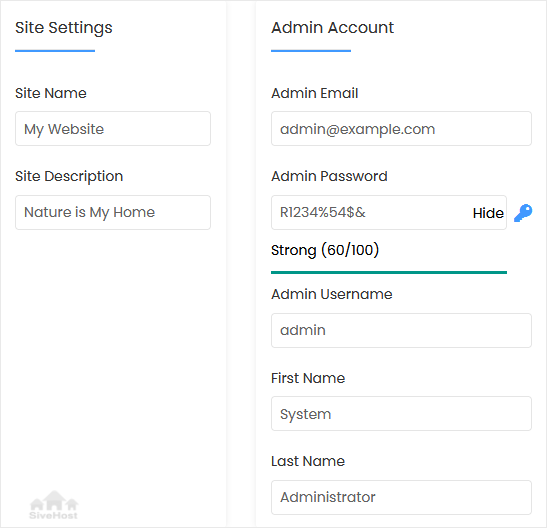 • Admin Email: Your e-mail address.