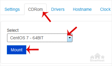 4. Now choose CDRom, and if the CD-ROM is already mounted, click on unmount and select your operating system from the list. Then click on Mount.