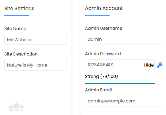 • Admin Username: Your new PopojiCMS username (for security reasons, do not use the administrator or the admin username).