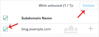 3. Under the Subdomain Name, select the subdomain name you want to remove.